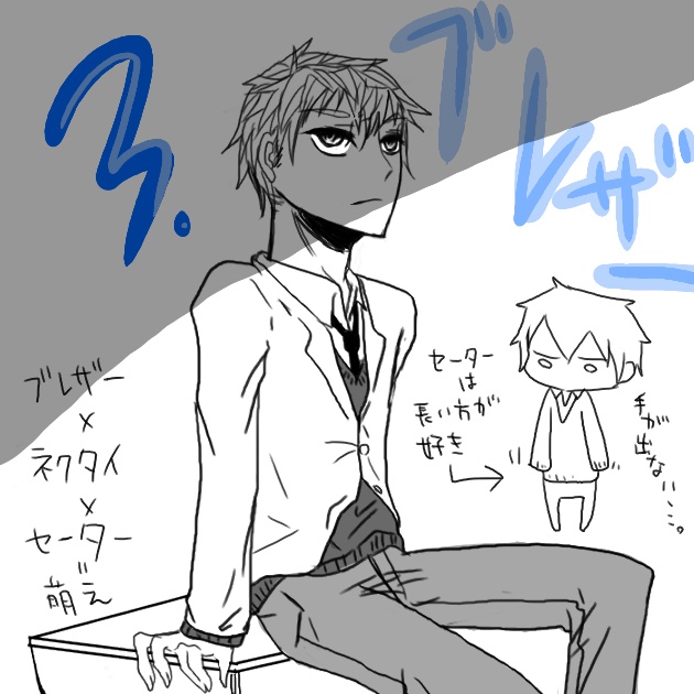 だけどブレザーって学ランより腹黒度が上がるのは何故なんだ^q^2面性がありそうなんだよねー、ブレザー男子って。